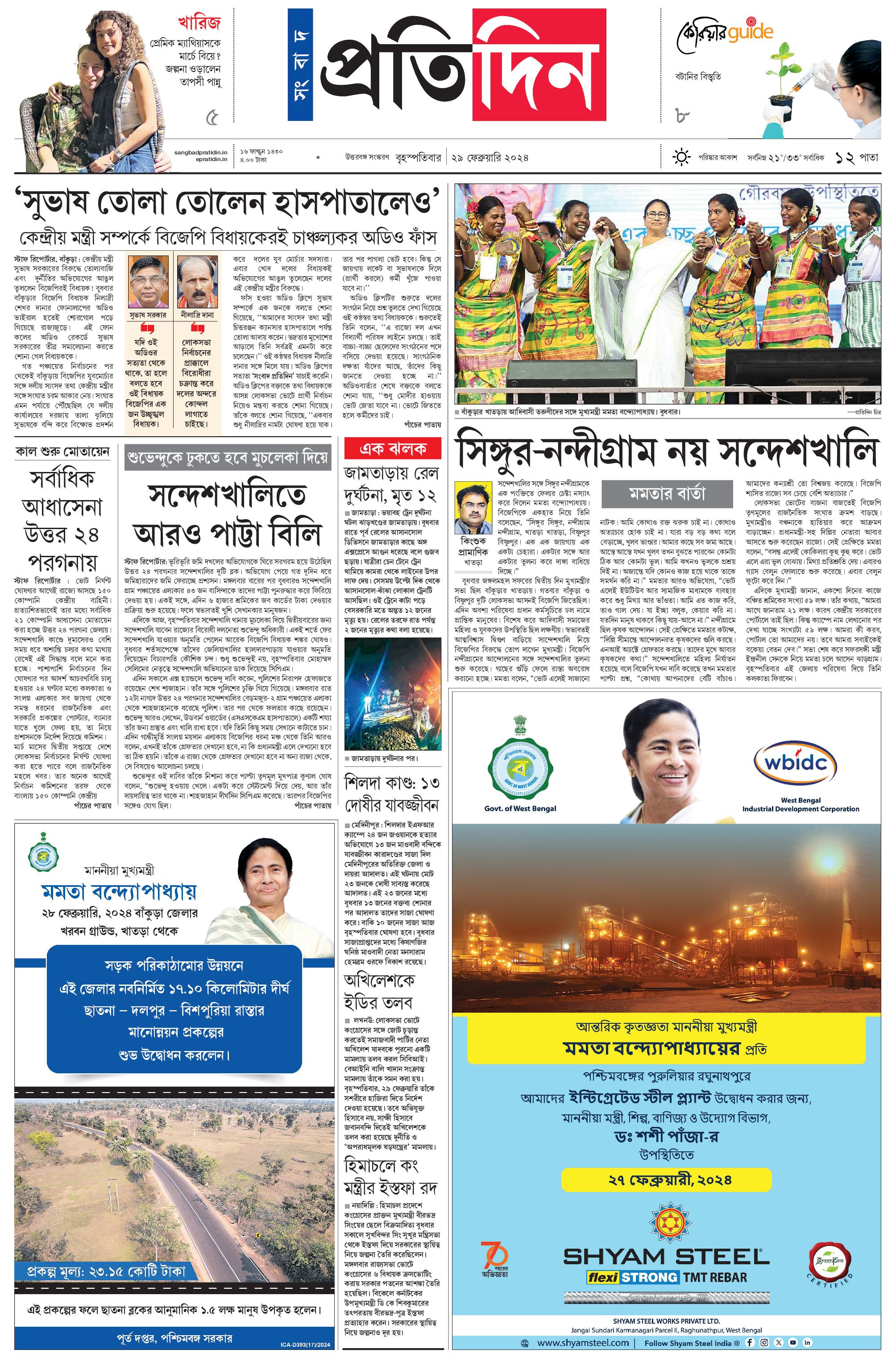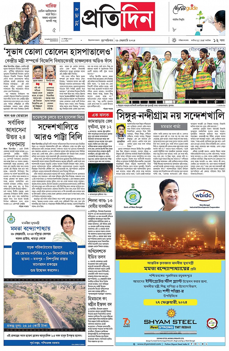 Sangbad Pratidin 29-02-24 << First < 1 2 3 > Last >> × Name: * From * Your Feedback * × Recipient's e-mail address * × Note! For multiple mail id use , Your e-mail address * Add your comments (optional) Sangbad Pratidin Page 1Page 2Page 3 Page 1 Page 2 Page 3