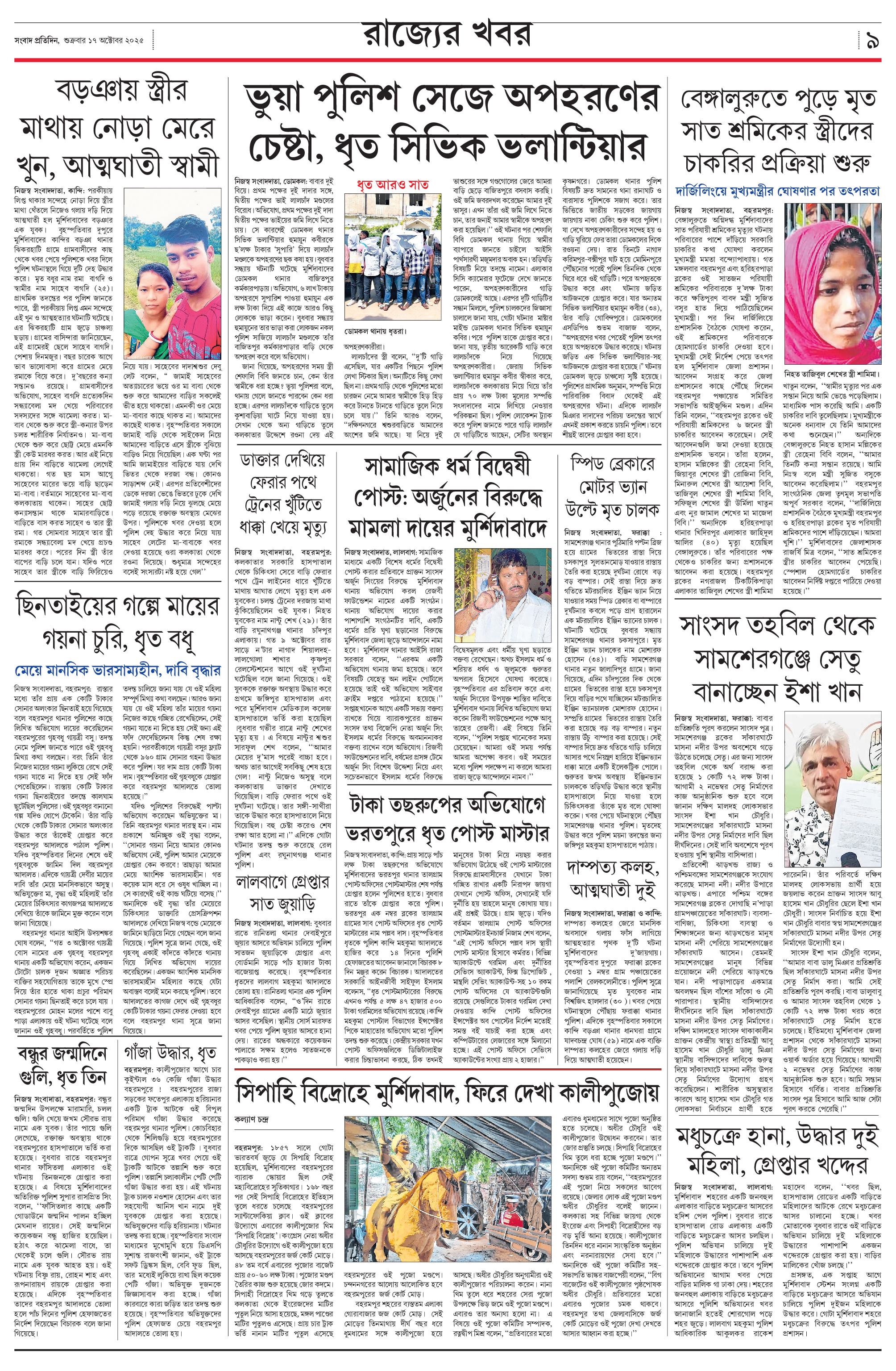 Sangbad Pratidin 17-10-25 Page: 4 << First < 1 2 3 4 > Last >> × Name: * From * Your Feedback * × Recipient's e-mail address * × Note! For multiple mail id use , Your e-mail address * Add your comments (optional) Sangbad Pratidin Page 1Page 2Page 3Page 4 Page 1 Page 2 Page 3 Page 4